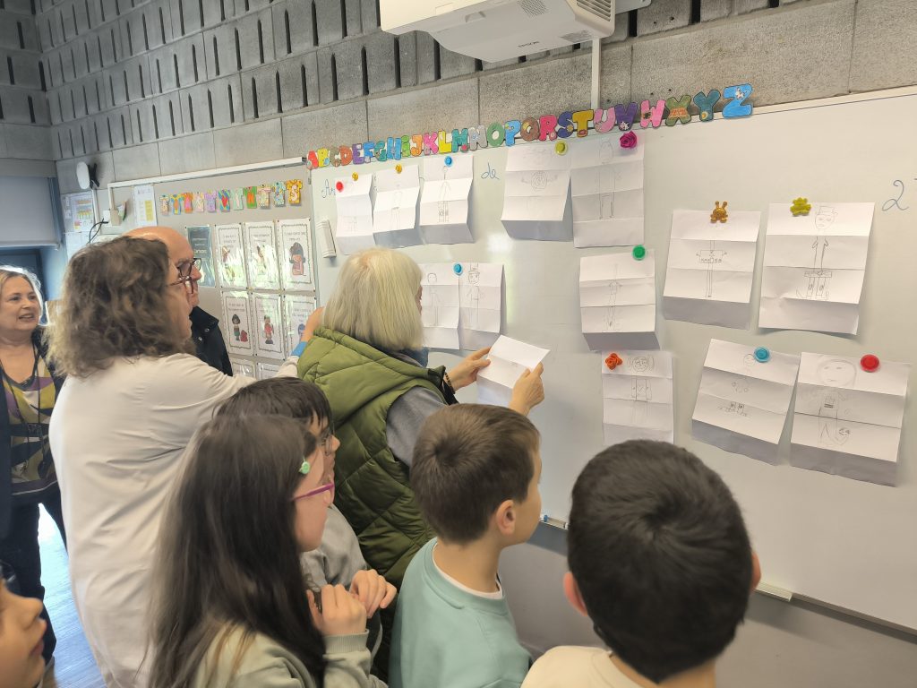 Além da partilha de melodias, as crianças experienciaram uma aula de desenho orientada pelos alunos da Universidade Sénior.