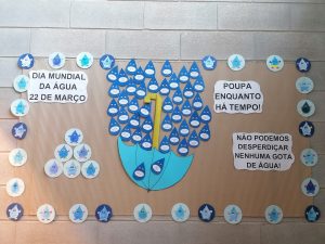22 de março é o Dia Mundial da Água e nós estivemos a refletir sobre a importância da água para a nossa vida. Todas as turmas realizaram bonitos trabalhos: vimos vídeos, construímos cartazes, gotas de água e usámos o computador para elaborarmos mensagens de alerta apelando à poupança da água!