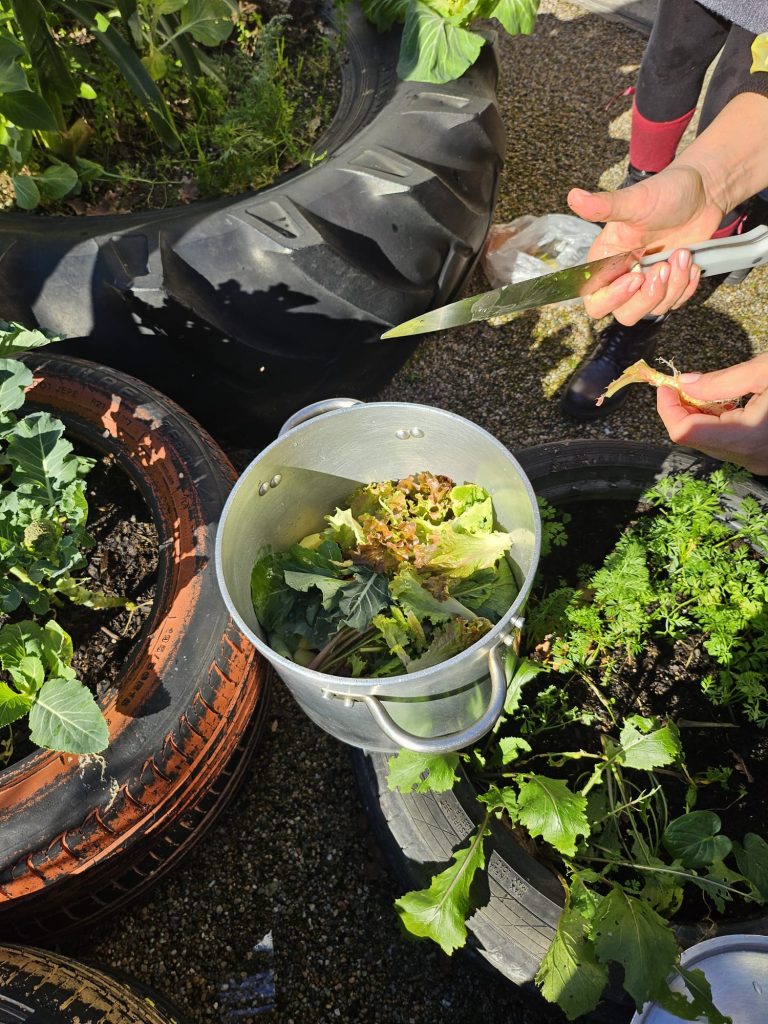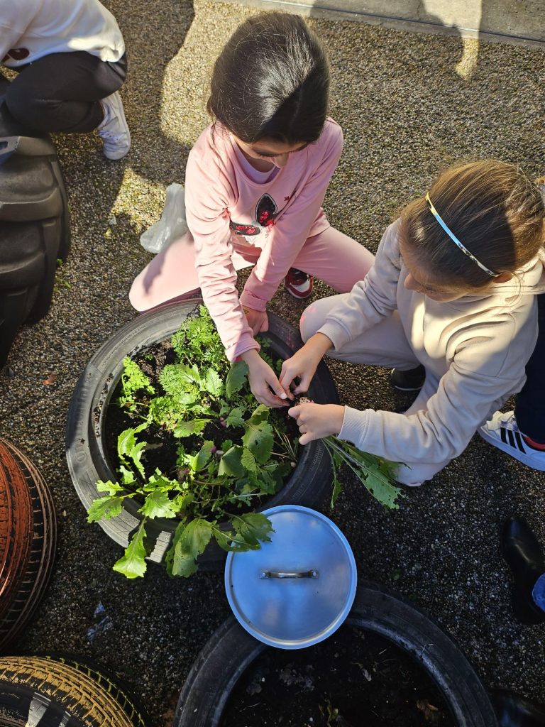 Hoje fizemos uma rica sopa na nossa escola! Usamos os legumes que plantámos em outubro: nabo, couve, cenoura, brócolo, alface, cebolinho. Arrancámos os legumes da terra, lavámo-los, cortámos e pusemos na panela. Acrescentámos água e sal e colocámos ao lume com a ajuda da cozinheira. Depois de cozidos os legumes foram triturados com a varinha mágica. A sopa ficou uma delícia! E assim acompanhámos o ciclo de crescimento de alguns legumes, desde a sua plantação até chegarem aos nossos pratos.